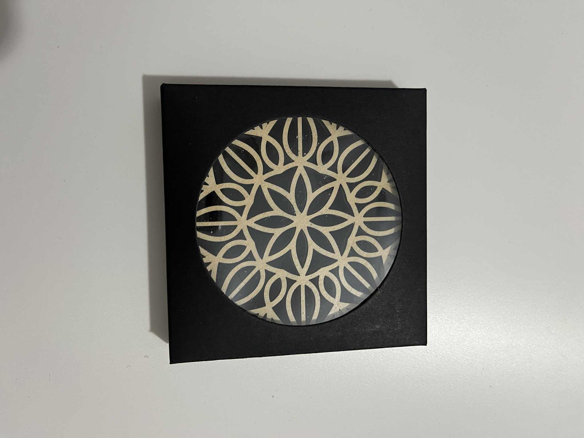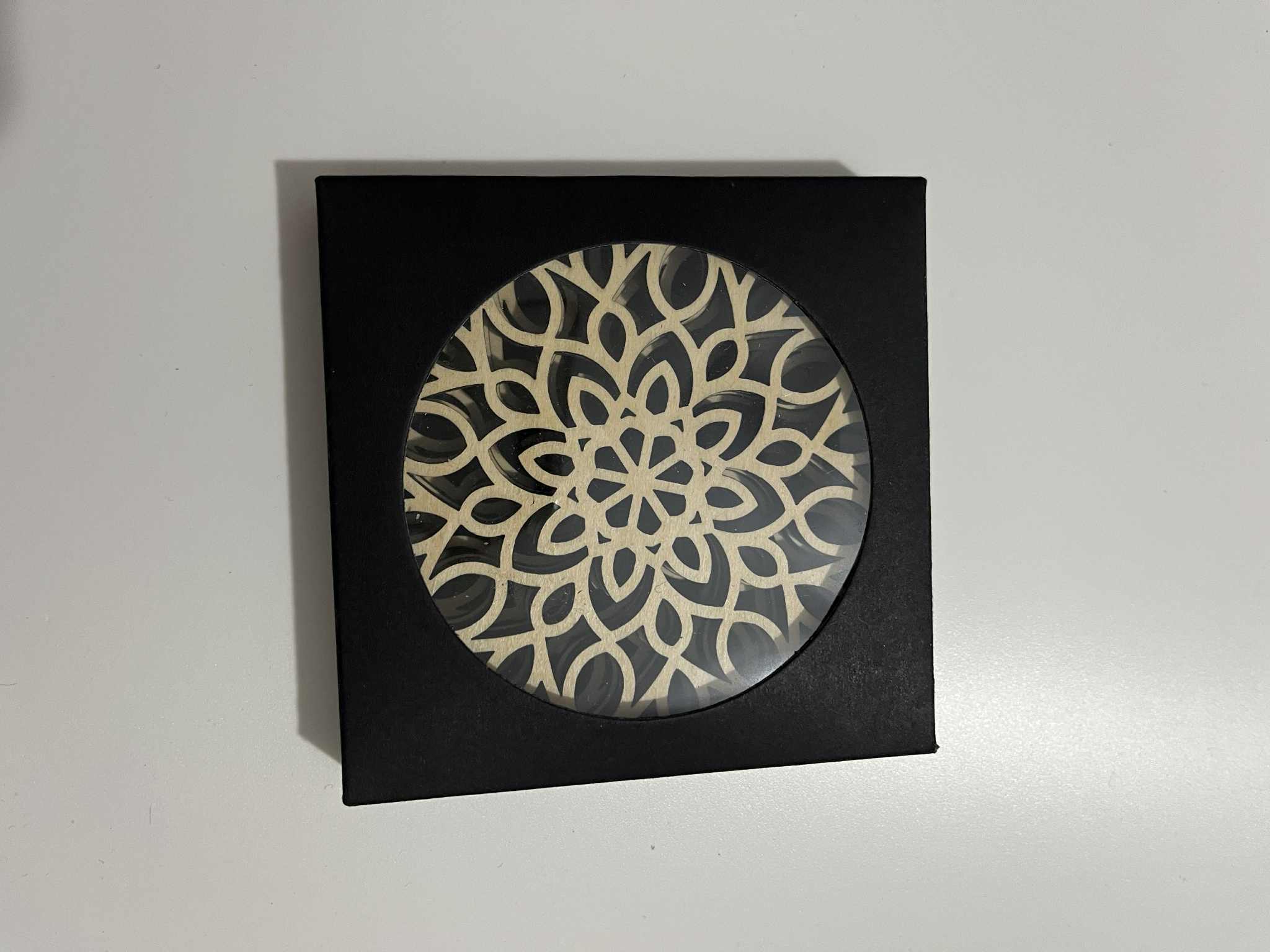 9cm x 9cm wooden geometric style coaster available in colours and can be mix and matches to make up the set of 4